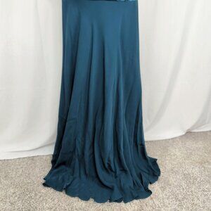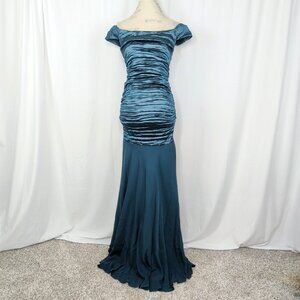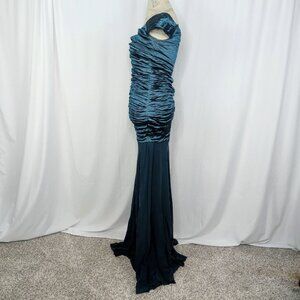 Nicole Miller Lapis blue formal gown with scrunched metallic top portion and flowy chiffon bottom
