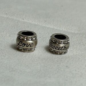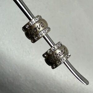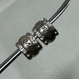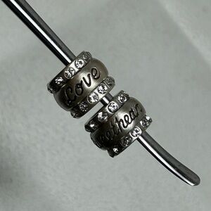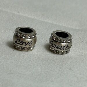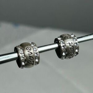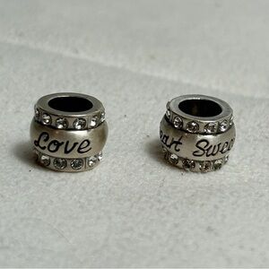 Brighton Love & Sweetheart Beads Spacers Brushed Silver Plated Swarovski Crystals 7/16" Qty 2