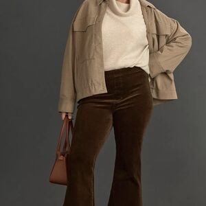 Anthropologie Teal Velvet Pull-On Flare Pants XL