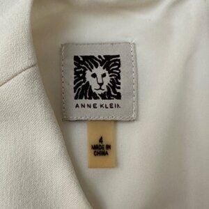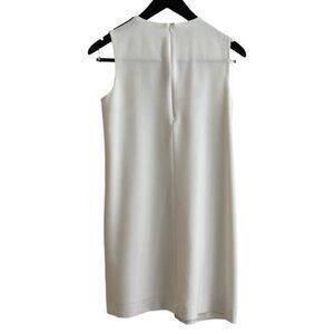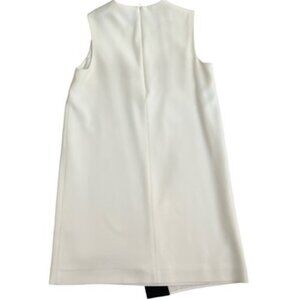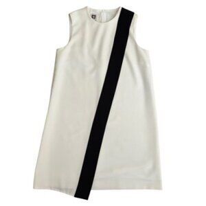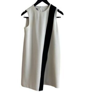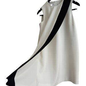Anne Klein Ivory Shift Dress with Asymmetrical Black Trimmed Overlay - Size 4