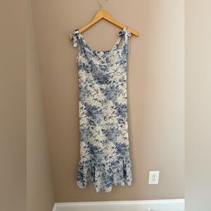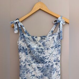 Reformation Chicwish Blue and Cream Floral Maxi Dress with adjustable straps M