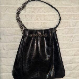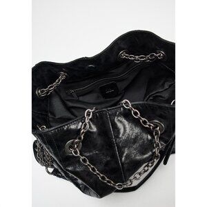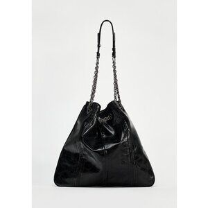 Sleek and stylish black shoulder bag with chain details. Perfect for any occasion.
