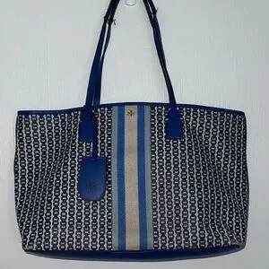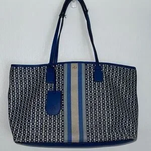 Tory Burch Gemini Link Tote Navy, Royal Blue, and White Geometric Shoulder Bag