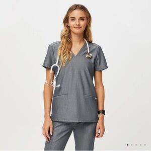 Figs Casma Three-Pocket Scrub Top Graphite