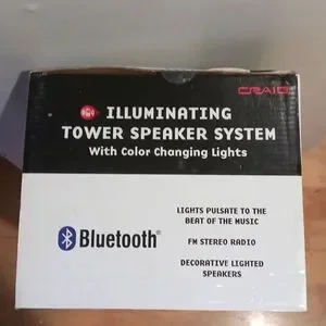 Craig, Illuminating Tower Speaker System, black with color changing lights. NEW