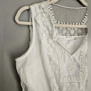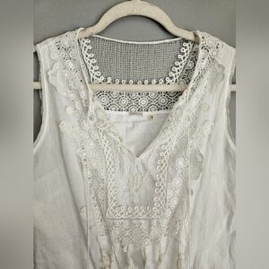 This elegant white dress features delicate lace trim, perfect for any occasion. Its timeless design offers a sophisticated look.