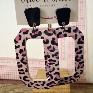 Olive & Stella Pink & Black Leather Leopard Print Earrings. NWT. Handmade