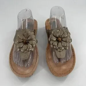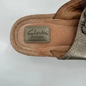 Keywords: Clarks Artisan, bronze sandals, leather sandals, flower sandals, thong sandals, women's sandals, artisanal, comfortable, casual, vacation, summer shoes, slip on, wedge sandals