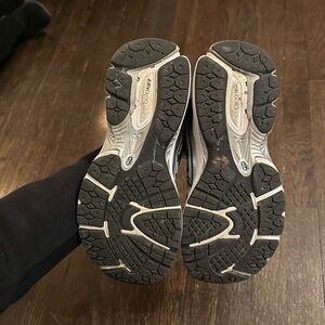 Blue/green accents with silver and white trainers. In great used condition! Sizing is men’s, fits women’s 6.5US