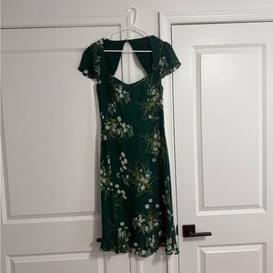 Green floral midi dress from reformation. Excellent condition, slight stretching on one shoulder (see image) but not noticeable.