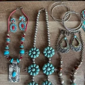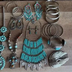 28 Piece Western Statement Jewelry Bundle - Squash Blossom Bracelets Earrings
