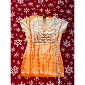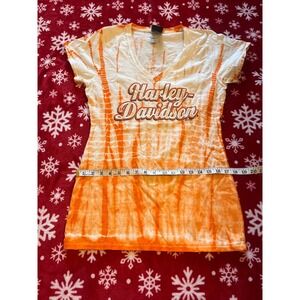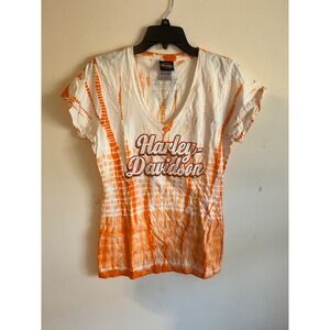 Harley Davidson Women's orange tye dye shirt V neck size large