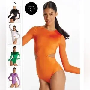 Balera orange long-sleeve dance gymnastics leotard side cutouts youth medium