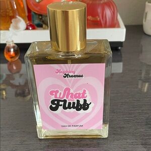 Experience the delightful scent of 'What the Fluff' Eau de Parfum. Encased in a chic pink and gold bottle, this fragrance is perfect for adding a touch of elegance to your collection.