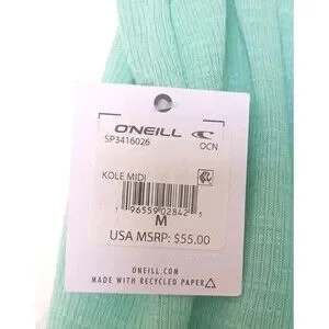 O’Neill Ribbed Tube Top Dress Mint Green Size Medium Beach Dress Side Slit New