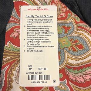🆕 LULULEMON Swiftly Tech Ling Sleeve Crew Neck Top