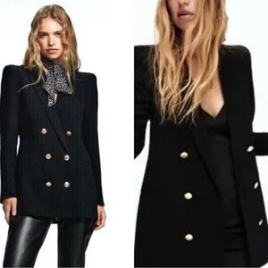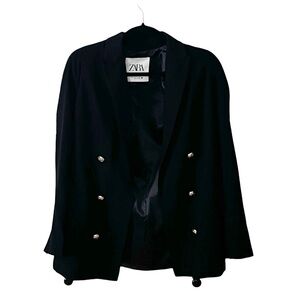 ZARA Runaway Shoulder Padded Double Breasted Accent Gold Black Blazet Sz S