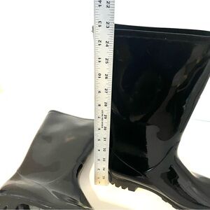 Time And Tru Women’s Black Glossy Mid Calf Pull On Rain Boots PVC Chunky Sole 7
