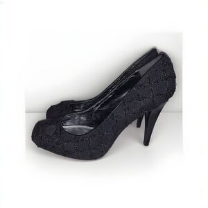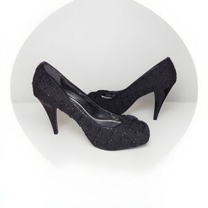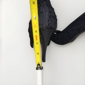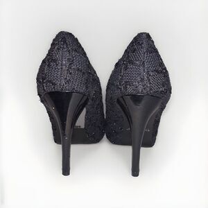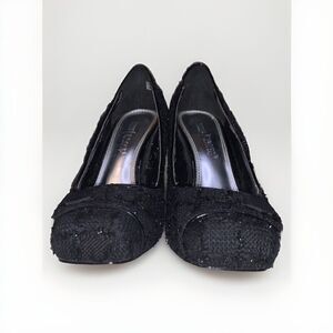 Elevate your formal attire with these stunning White House Black Market Edison sparkle button square toe stiletto heels in size 8.5. The black synthetic upper material is textured with glitter accents and a button closure for added style and sophistication. Perfect for weddings, parties, cocktails, or casual wear, these pumps and classics are a must-have in any wardrobe. The high 3 to 4 1/4 inch stiletto heel provides a comfortable fit and added height, while the medium width ensures a versatile fit. Make a statement with these beautiful heels and complete your look with confidence.