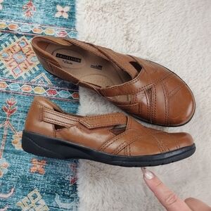 Clarks Brown Leather Soft Cushion Comfort Shoes Women US 9M