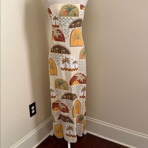 New Anthropologie Paper Heart Linen Blend Strapless Maxi Dress Embrace a tropical vibe with this stunning maxi dress. Featuring a unique print in cream and brown tones, it's perfect for any occasion.