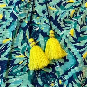 Lilly Pulitzer brings another design to life on this supersoft tunic dress designed with tassel ties and easygoing bell sleeves. In the Indigo Midnight Cove print.