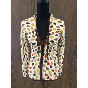 New Vertigo Paris Russet Whimsey Showers Colorful Hooded Zip Front Sweater Small