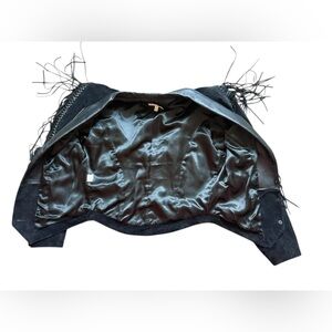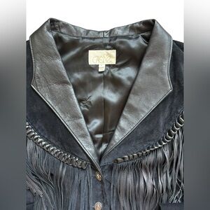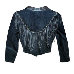 Cache Fringe Suede black Leather Jacket size 8.