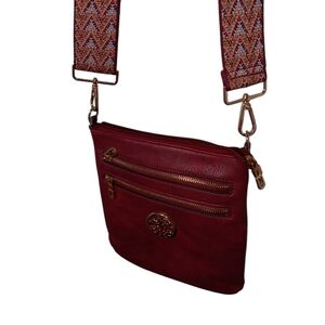 Montana West multi pocket crossbody bag purse with Montana West printed fabric and adjustable western style strap. Dark red Very good condition.