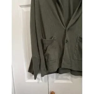 Stylish olive green blazer. Organic cotton. Features a relaxed fit. Perfect for casual or professional wear.