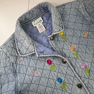 Vtg CAT Quacker Factory Jacket Womens L Quilted Embroidery Grannycore (READ)