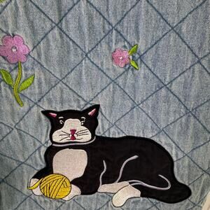 Has embroidered flowers and cat, amazing Cottage core coat
