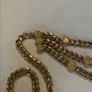 Luxurious gold chain belt featuring intricate medallion details. Ideal for elevating any ensemble.