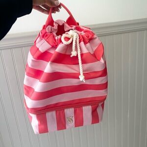 ⭐️ NEW Victoria's Secret Pink Striped Drawstring Cooler Backpack