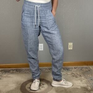 Athleta Womens Cabo Linen Jogger Size 8T Tall Light Blue Chambray Zip Pockets