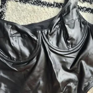Glossy black top with high cut bodysuit style. Perfect for date night or concerts.