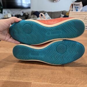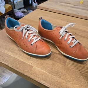 Ecco Women's Orange Leather Sneakers with Blue Soles