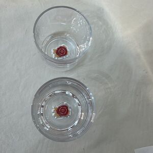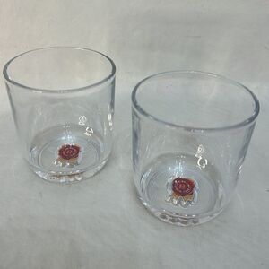 Jim Beam Rocks Glasses 8 Oz Each 3 1/2 In Tall 3 In Round Set 2 Red Gold Logo
