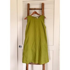 EILEEN FISHER sleeveless olive green linen cotton midi shift dress size M