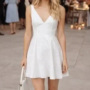Reformation Devi Dress 4 White Mini Dress Deep V Neck Flirty Mini Date Night