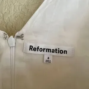 Gorgeous and flirty white Devi Dress from Reformation! Size 4. Features a sleeveless cut with a deep v neckline, mini length, and a back zipper. Excellent preowned condition! Little to no signs of wear, no flaws.
