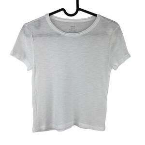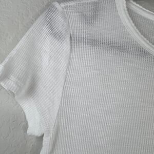NWT Aerie White Cropped Textured Waffle Baby Tee Size XS Short Sleeves Scalloped