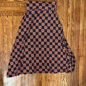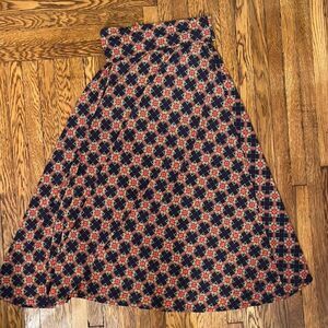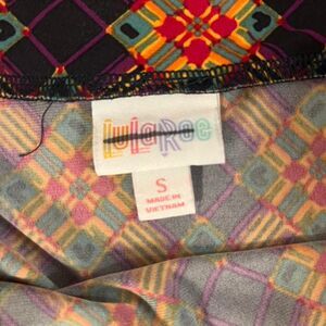 This skirt is bringing Art Deco vibes. LulaRoe size small, purple, yellow and red boho skirt