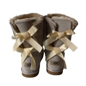 UGG Women's Bailey Bow II boots in a soft light beige (“Goat”) color.