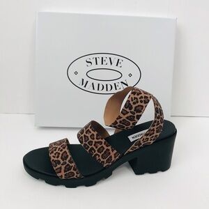 New! Steve Madden Haidar Chunky Heel Leopard Cheetah Print Ankle Sandals
