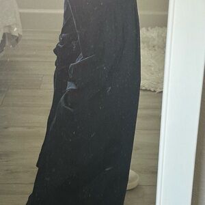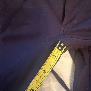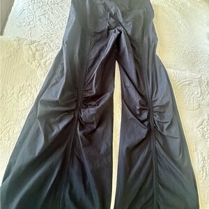 ADORABLE navy fun and casual pant. fitted at top with a gather at knee and bottom flare with a very flattering and comfortable fit. Made from a cotton-spandex blend.