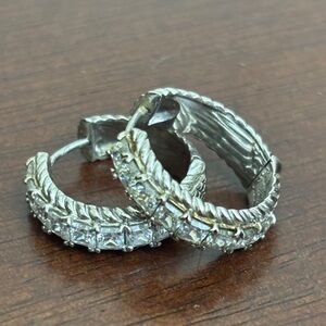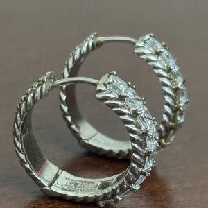 Judith Ripka Sterling Silver 925 Princess Cut Cubic Zirconia Hoop Earrings