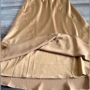 Chic A-line satin skirt by Banana Republic. Warm tan color. Flattering and versatile.