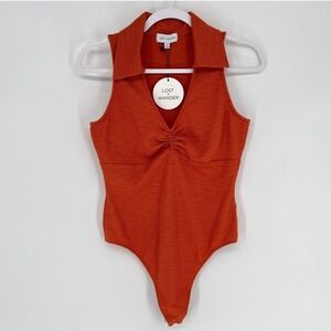 ost + Wander Orange Ribbed Sleeveless Collared Bodysuit Y2K Inspired M NWT