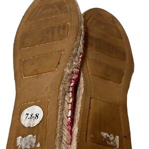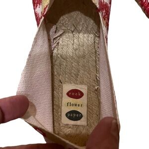 Rock Flower Paper Floral Flat Espadrilles Canvas Jute Beige, Red, & Yellow 7.5